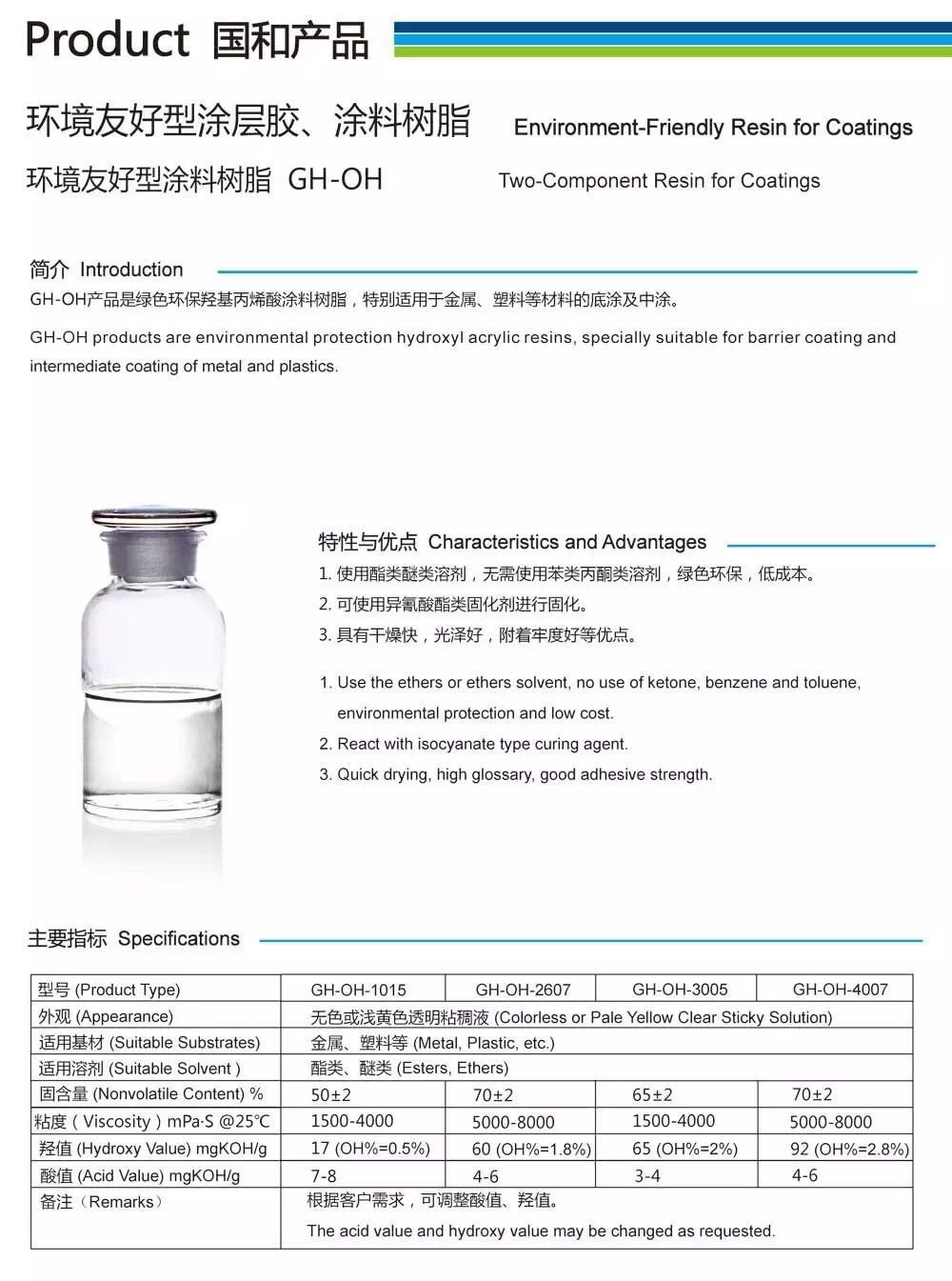 國和公司是由留美、留日博士創(chuàng)辦,專業(yè)從事環(huán)保新材料研發(fā)、生產(chǎn)、銷售、服務(wù)于一體的高新技術(shù)企業(yè),旗下有江蘇常熟國和新材料有限公司、四川國和新材料有限公司、成都國和科技有限公司三家子公司,先后被評(píng)為國家級(jí)高新技術(shù)企業(yè)、新興產(chǎn)業(yè)重點(diǎn)企業(yè)、知識(shí)產(chǎn)權(quán)試點(diǎn)企業(yè)。常熟國和新材料有限公司于2011年成立,主要從事涂料、油墨樹脂、膠黏劑等產(chǎn)品的規(guī)?;a(chǎn)。