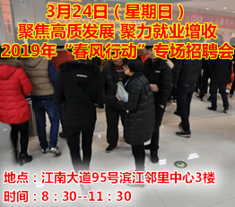 3月24日服務(wù)發(fā)展求高質(zhì) 助力用工促就業(yè)2019年“春風行動”專場招聘會