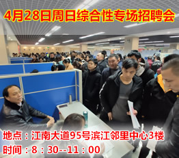 您當(dāng)前的位置:首頁 > 招聘會 > 4月28日周日綜合性專場招聘會
