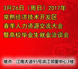 3月26日(周日)2017年常熟經(jīng)濟(jì)技術(shù)開發(fā)區(qū)春季人力資源交流大會(huì)暨高校畢業(yè)生就業(yè)洽談會(huì)